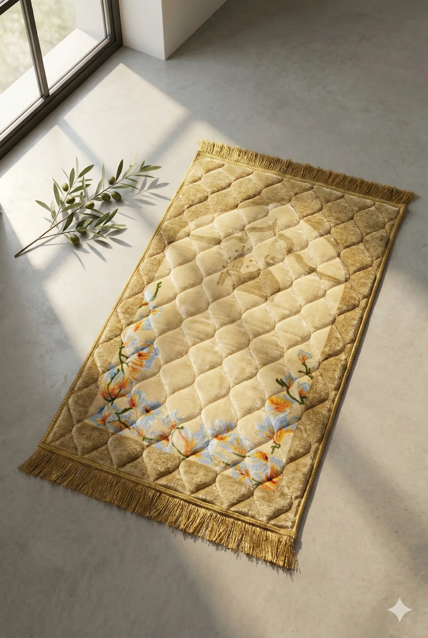 Al-Ihsan Edition Beige Floral Quilted Prayer Mat