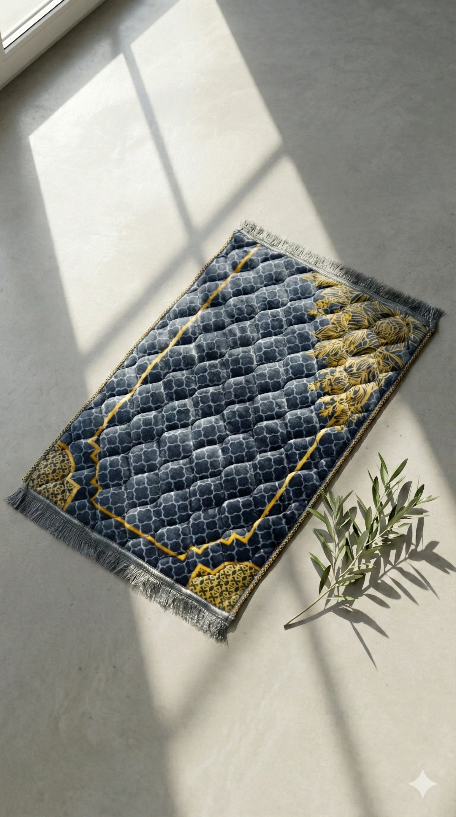 Al-Ihsan Edition Dark Blue Gold Accent Quilted Prayer Mat